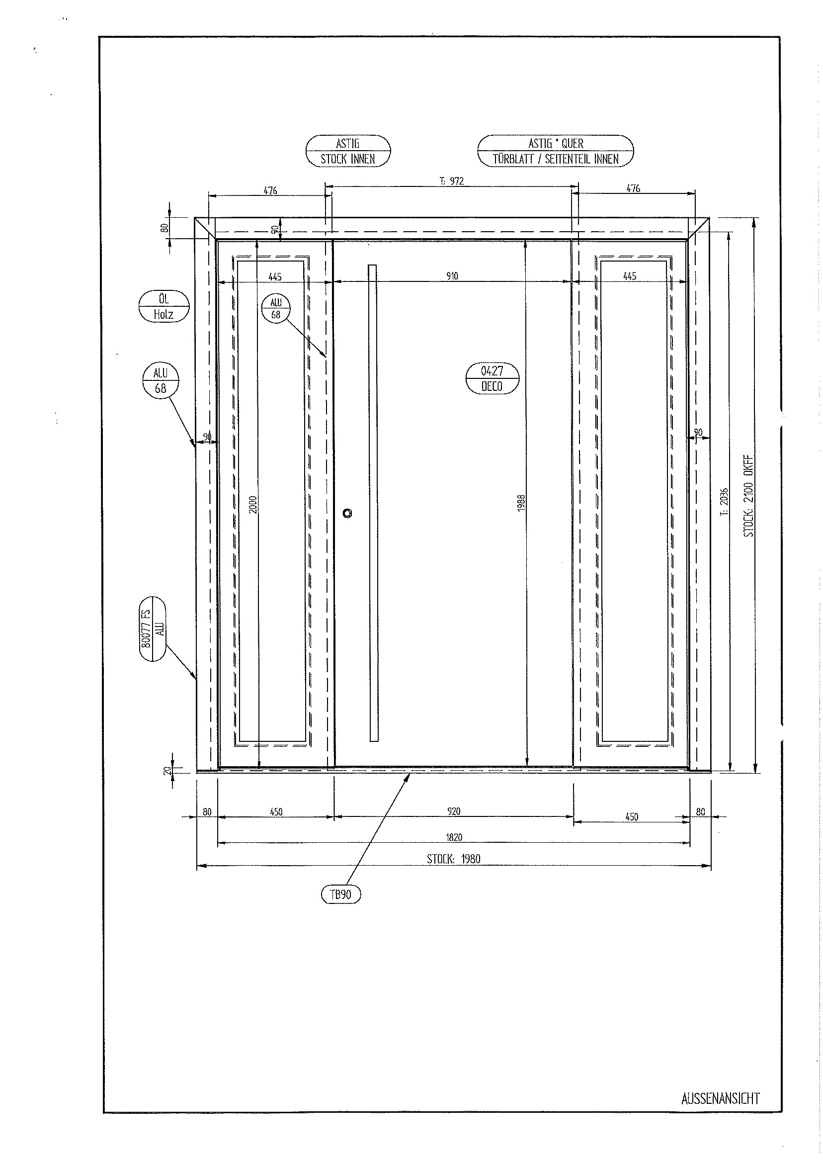 Farbe Türblatt (Alu) außen: Betonoptik